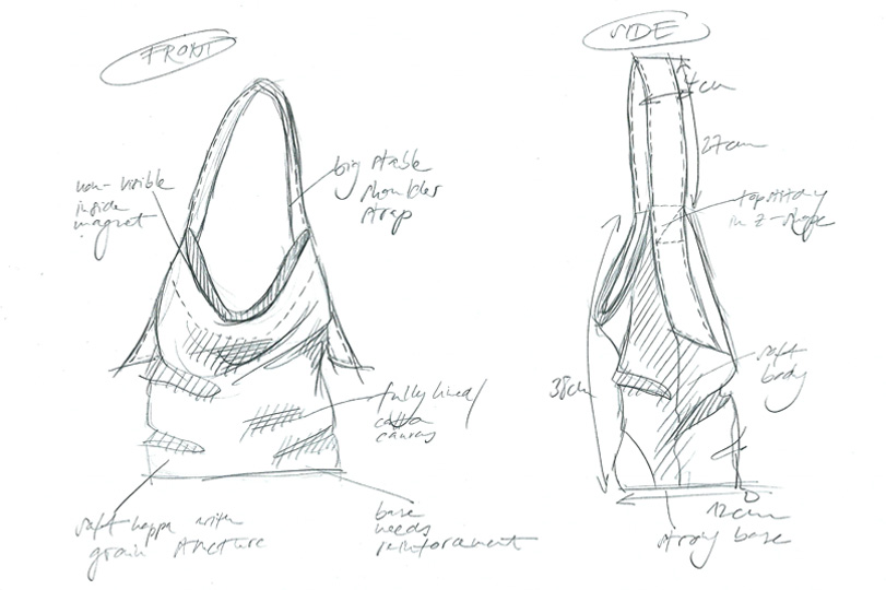 Konzeption, Accessoire Design, Sourcing und technische Entwicklung einer Taschenkollektion aus chromgegerbtem Leder/